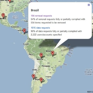 Foram 194 pedidos de remoção de conteúdo feitos por meio de agências governamentais brasileiras, dos quais 54% deles foram atendidos pelo Google. Os Estados Unidos ficaram em segundo na lista, com 187 pedidos e 42% de índice de observância. Em terceiro, aparece a Alemanha, com 103 pedidos e índice de 77%.